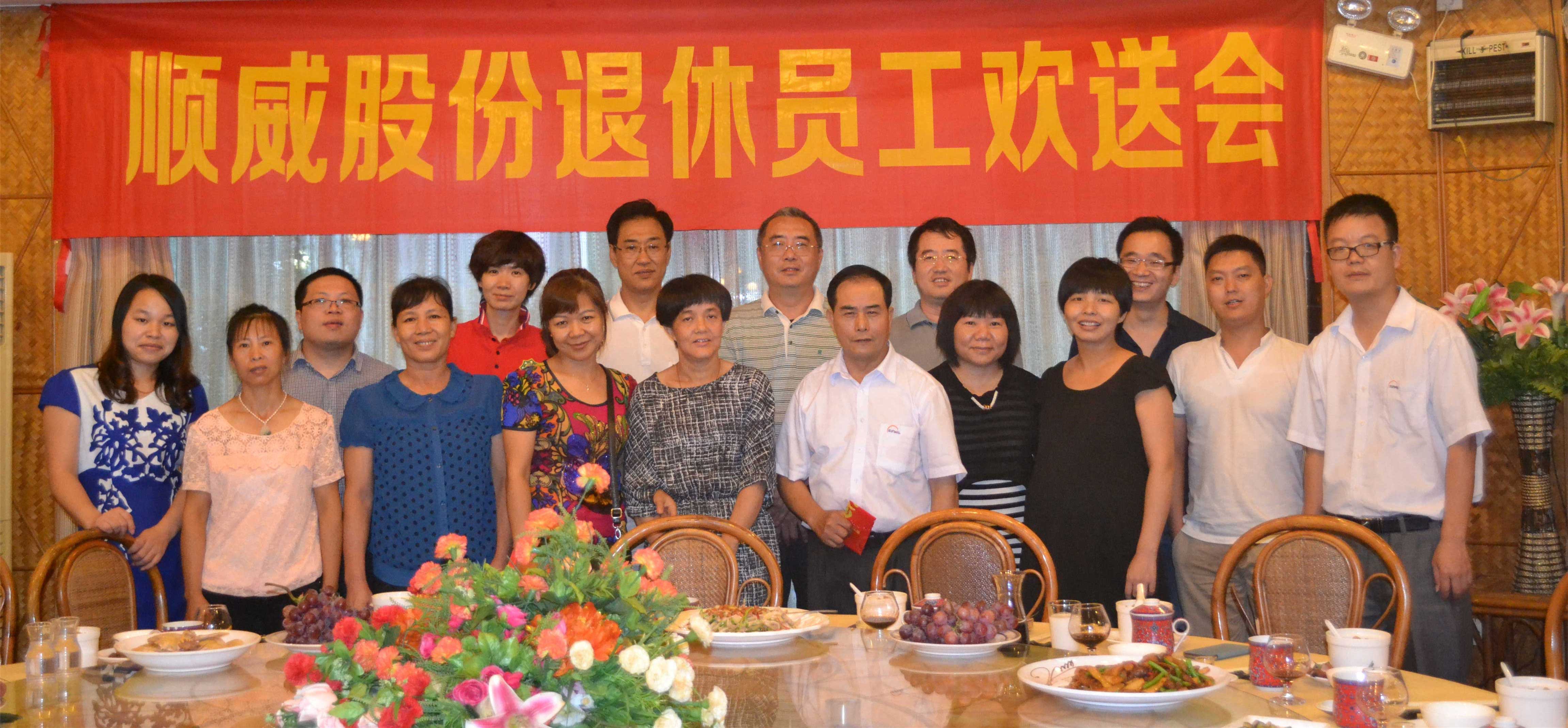 本報訊(通訊員 白琳)2014年7月5日——對于廣東順威精密塑料股份有限公司(以下簡稱為“順威股份”)來說是一個特殊而又不舍的日子。在這一天,公司5名老員工“解甲歸田”,光榮退休了。為此,公司在順德皆大歡喜食府專程設宴,為他們舉辦了隆重的退休歡送會并送上了誠摯的謝意和祝福。
