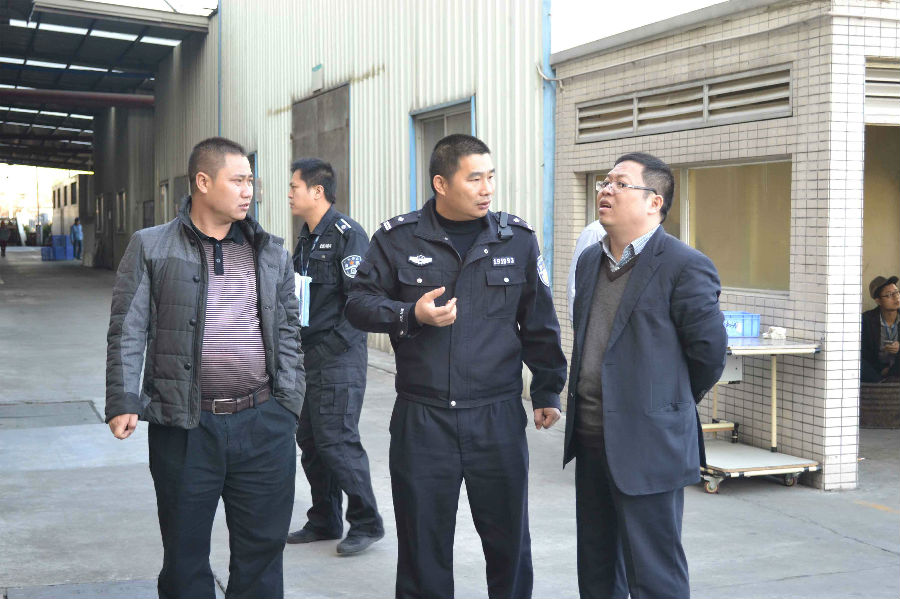 事故發(fā)生后,國(guó)家、省、市區(qū)、以及公司領(lǐng)導(dǎo)對(duì)此高度重視。在順德各鎮(zhèn)街如火如荼地全面開(kāi)展安全生產(chǎn)大檢查的同時(shí), 2015年1月14日上午,順德區(qū)容桂城東派出所鄧警長(zhǎng)一行來(lái)到順威,并代表容桂公安分局開(kāi)展消防安全檢查。廣東順威精密塑料股份有限公司(以下簡(jiǎn)稱“順威股份”)綜合管理中心總監(jiān)陳詠先生,順威股份順德塑料分公司總經(jīng)理景新兵先生,順德塑料分公司生產(chǎn)部副部長(zhǎng)佘琴琴女士等公司領(lǐng)導(dǎo)陪同檢查。
